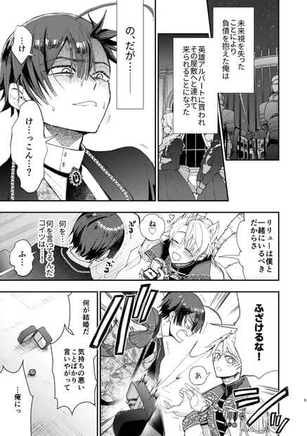 小説世界にモブキャラとして転生したリリューは、原作の知識という予知能力を駆使して、本来主人公アルバートが達成するはずだった多くの偉業を奪い取ってきた。ところが、物語が完結すると共に、彼の栄華も終焉を迎える。功績を失ったリリューを襲ったのは厳しい現実だった。莫大な負債に圧迫され、婚約者からも見捨てられ、暮らしは完全に破滅してしまう。絶望の底に追い詰められた彼の前に現れたのは、皮肉にも功績を奪われ続けた当事者であるアルバート本人だった。借金の代償として「購入された」リリューは、アルバートの居住する公爵家屋敷へと無理やり運ばれていく。そこで彼を待っていたのは、男同士でありながら一方的に押し付けられる「婚姻」という名の拘束だった。指に装着された指輪は絶対に取り外せることがなく、彼から逃走手段を完全に奪い去る。かくして開始されたのは、日々アルバートに肉体を玩具にされる屈辱に満ちた日常だった。リリューがいくら拒絶し反抗しても、彼は脆い人形を操るような残酷さで彼を支配し続ける。本作品は「成り代わりモブは逃げられない」の正式な後続作として位置付けられている。各エピソードは独立完結形式ではなく、「続く」形式で進行されるため、今後の続編に期待です。